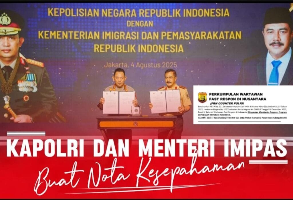 JAKARTA // Radarrepublik.com – Polri dan Kementerian Imigrasi dan Pemasyarakatan meneken nota kesepahaman. Dengan adanya hal tersebut diharapkan sinergisitas kedua lembaga tersebut dalam berjalan semakin optimal. Nota kesepahaman tersebut tentang Sinergisitas Tugas dan Fungsi di Bidang Kepolisian, Keimigrasian dan Pemasyarakatan di Jakarta Pusat, Senin (4/8/2025). Penandatanganan tersebut dilaksanakan langsung oleh Kapolri Jenderal Listyo Sigit Prabowo […]