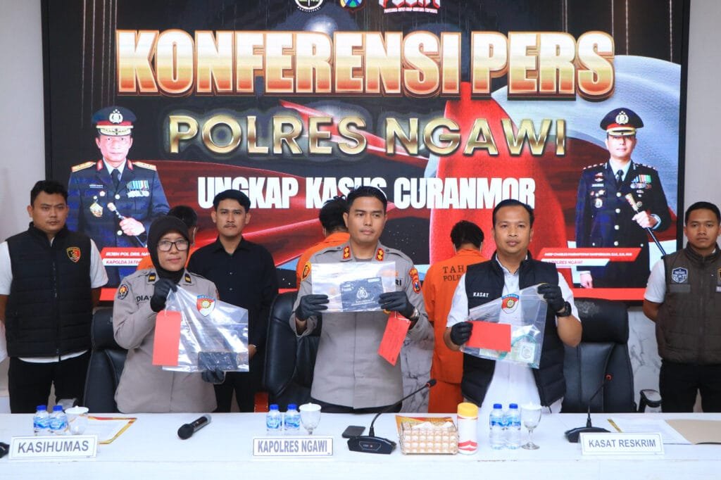 NGAWI // Radarrepublik.com – Polres Ngawi Polda Jatim berhasil mengungkap kasus pencurian kendaraan bermotor (curanmor) roda dua lintas provinsi, kurang dari 24 jam. Total ada 17 Tempat Kejadian Perkara (TKP) yang tersebar di wilayah Jawa Timur dan Jawa Tengah. Hal itu disampaikan oleh Kapolres Ngawi, AKBP Charles Pandapotan Tampubolon saat konferensi pers pengungkapan kasus ini […]