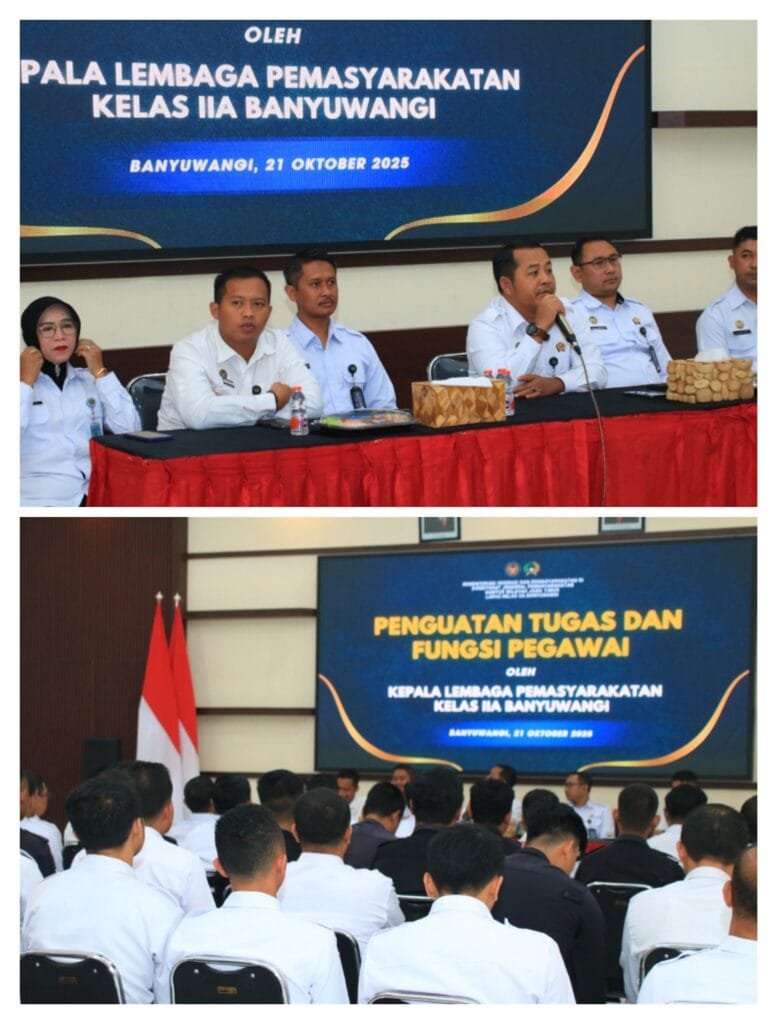 Banyuwangi – Radarrepublik.com | Kepala Lembaga Pemasyarakatan (Kalapas) Kelas IIA Banyuwangi, I Wayan Nurasta Wibawa, menekankan kepada seluruh jajarannya untuk senantiasa menjalankan tugas dengan mengedepankan integritas dan profesionalitas. Penekanan ini disampaikan secara langsung oleh Kalapas Banyuwangi saat memimpin rapat dinas dalam rangka penguatan tugas dan fungsi Pemasyarakatan, yang diikuti oleh seluruh pegawai di lingkungan Lapas […]
