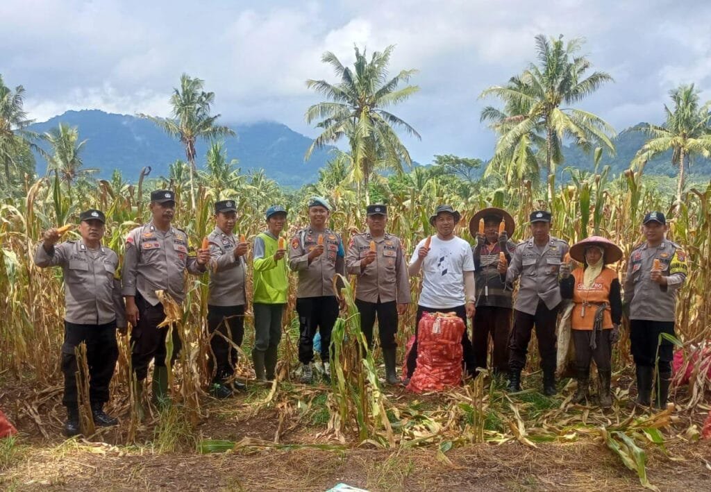 Polresta Banyuwangi Dorong Ketahanan Pangan, Bhabinkamtibmas Dampingi Panen Jagung di Glenmore