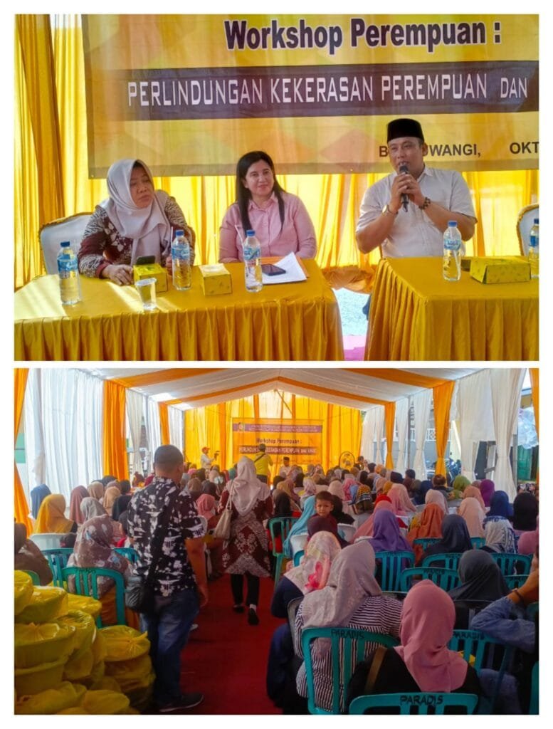 Banyuwangi – Radarrepublik.com | Dinas Sosial Kabupaten Banyuwangi menggelar workshop khusus tentang perlindungan kekerasan terhadap perempuan dan anak di Dusun Krasak, Desa Kaotan, Kecamatan Blimbingsari. Acara ini menghadirkan Marifatul Kamila, SH, anggota DPRD Kabupaten Banyuwangi dari Komisi 1 Partai Golkar, sebagai pemateri utama. Jumat, (17/10/2025)